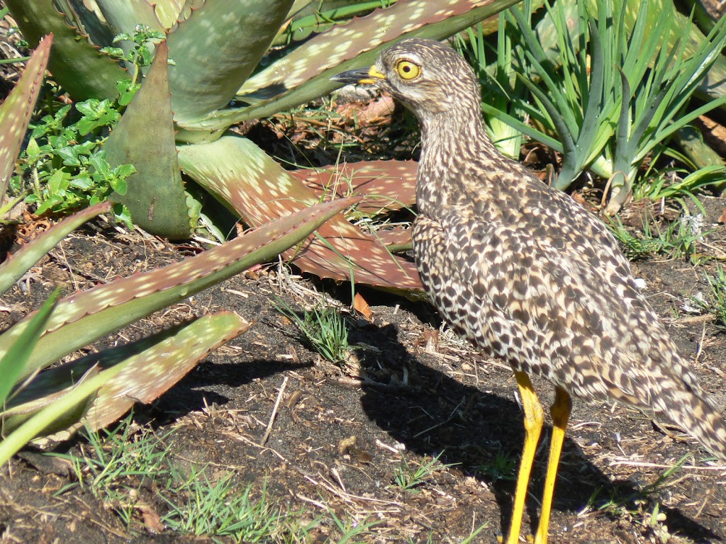 Just as exciting, for me at least, is that the dikkops are scouting the aloe garden. I am hoping that they will nest here again. These are the strangest and most delightful birds. They form monogamous pairings, and they “play dead” to protect their nests.