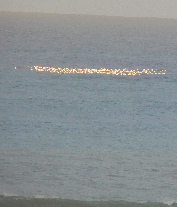 Maybe it is happening at last: two days ago, I watched a thick smudge of frenzied activity slide past in the sea. The gannets – must be thousands of them – were crazy, and the sea was foaming.