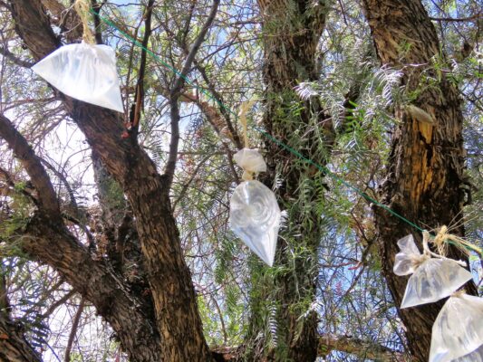 Intriguingly, little packets of water hung in the tree above our table. These are to deter flies – apparently, their multi-faceted eyes can’t bear the reflection. It seems to work. And when a lone fly gets through, the pizza chef cocks his salt gun and blasts it to smithereens. True story.