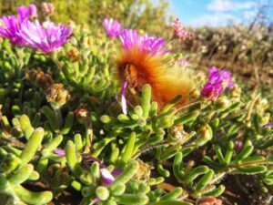 Fernkloof in Hermanus is a treasure: you’ll find ferns and waterfalls, proteas and restios, with the most incredible views opening as you skirt the side of the mountain. The teeniest, most interesting succulents grow among the quartz in the knersvlakte, north of Vanrynsdorp. I took the pics in the gallery below this text on the edge of the knersvlakte in September 2021.